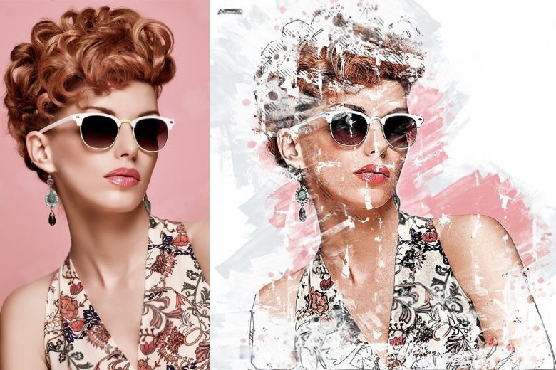 4种破损绘画混合特效艺术图像处理特效PS动作
